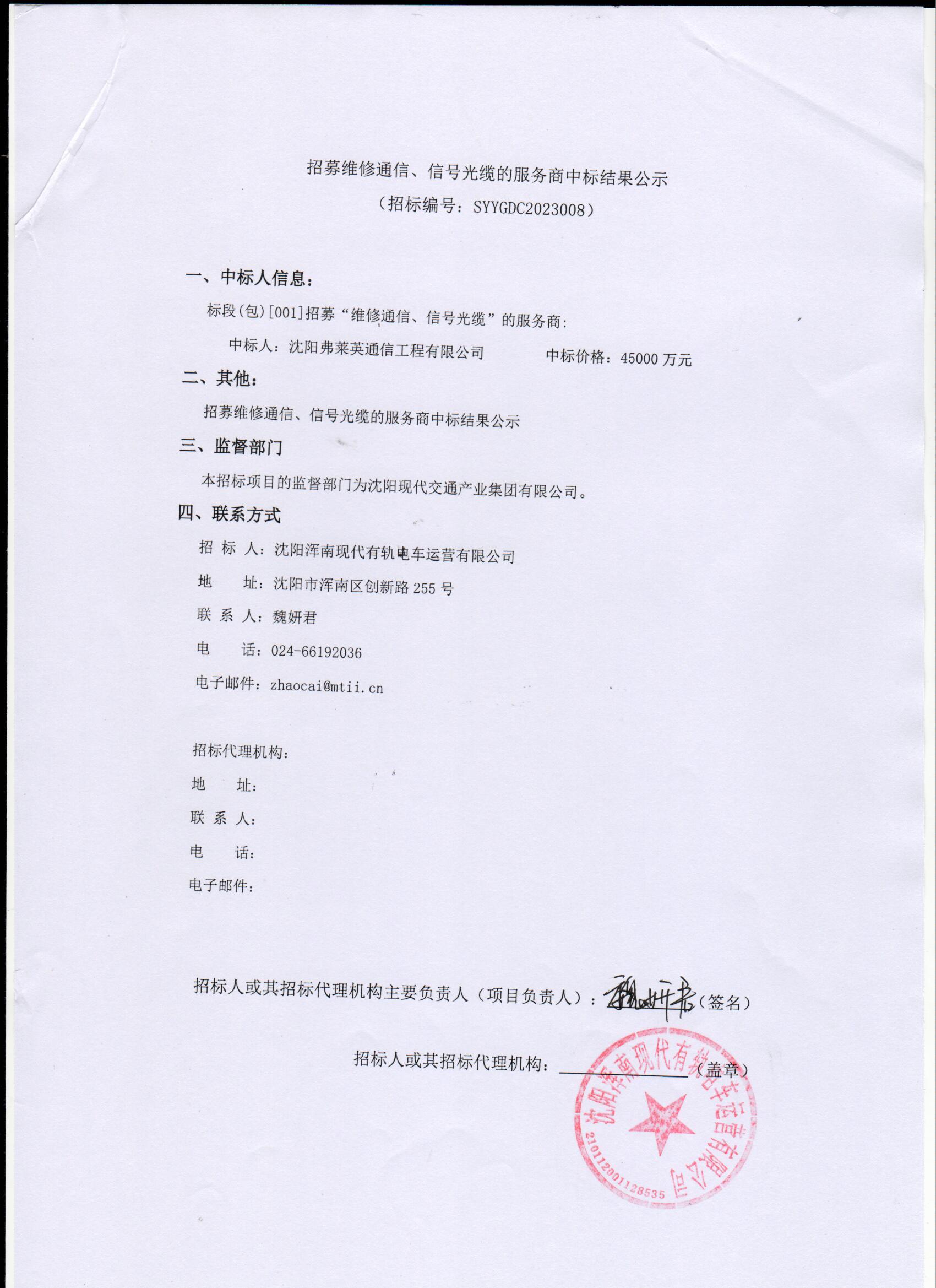 招募维修通信、信号光缆的服务商中标结果公示