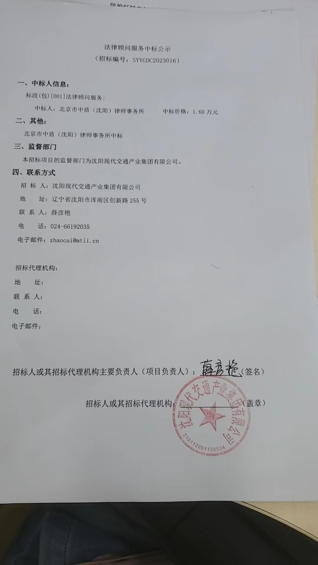 沈阳现代交通产业集团 | 2023-08-21