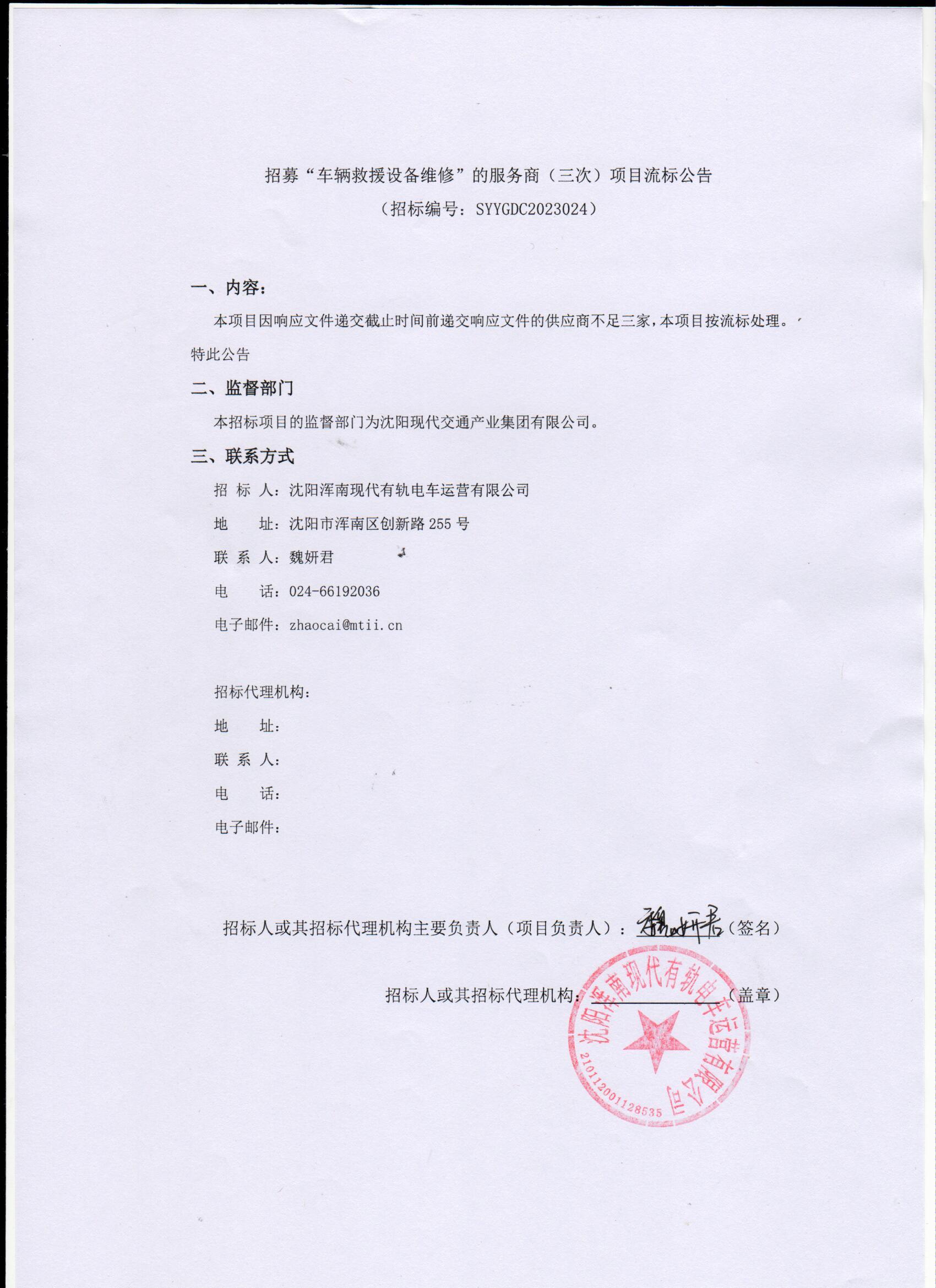 招募”车辆救援设备维修“的服务商(三次)项目流标公告