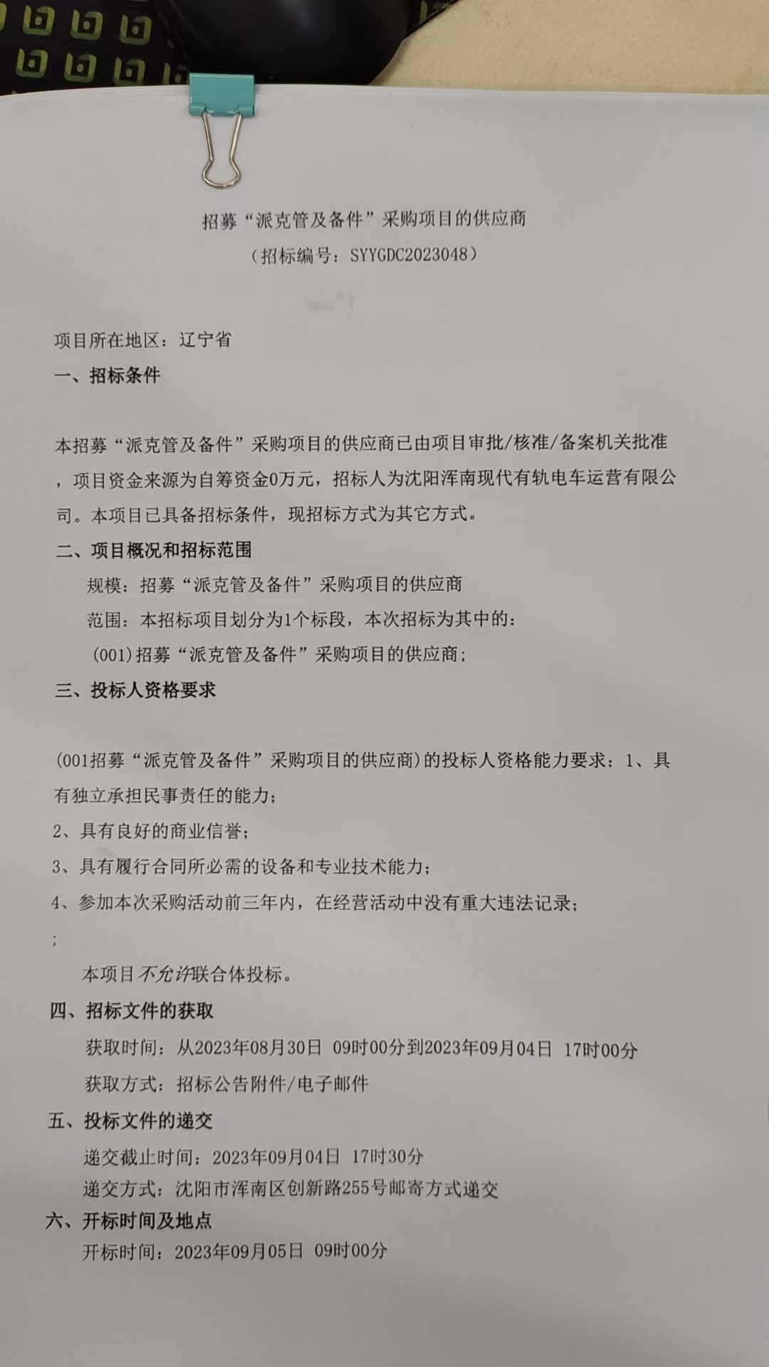 招采公告-招募“派克管及备件”采购项目的供应商