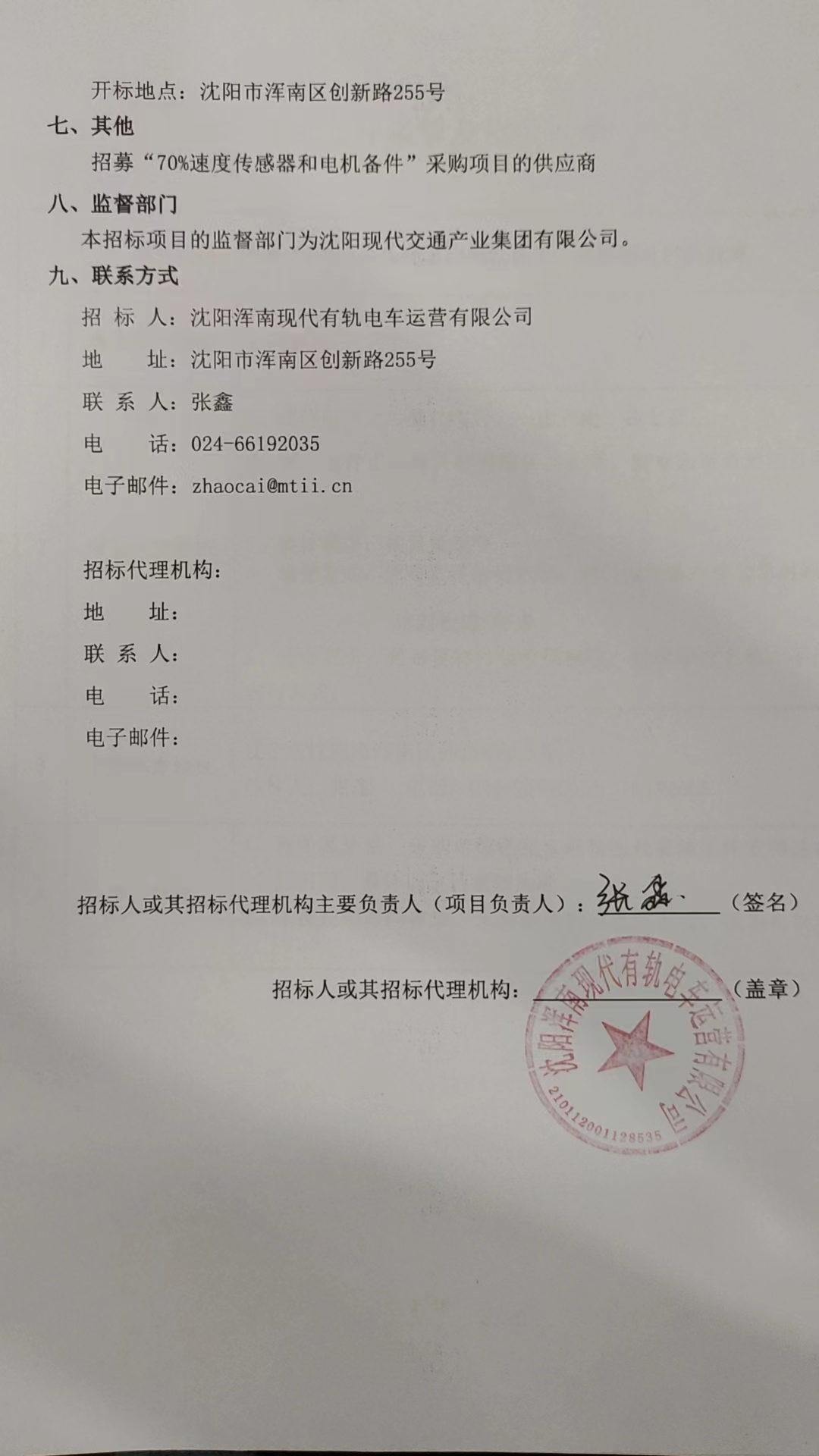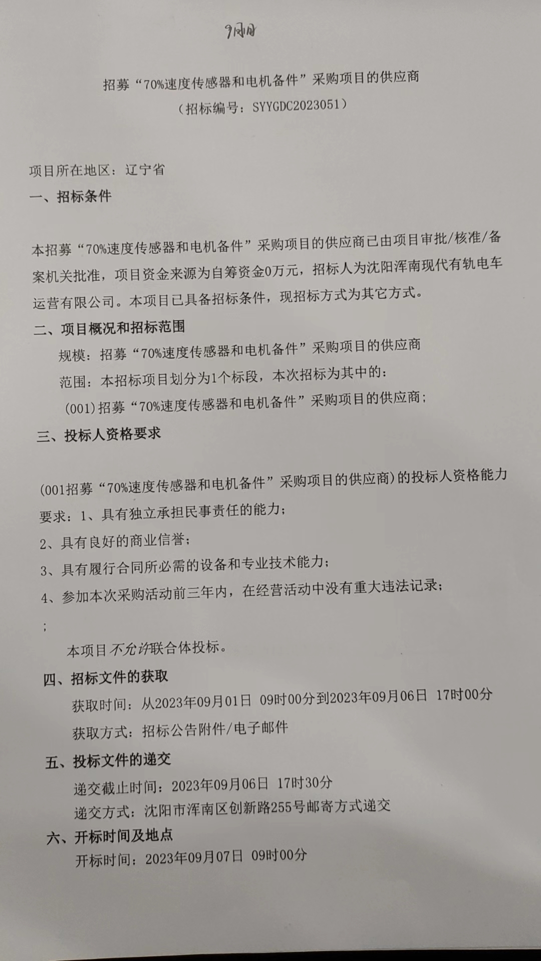 招采公告-招募“70%速度传感器和电机备件”采购项目的供应商1