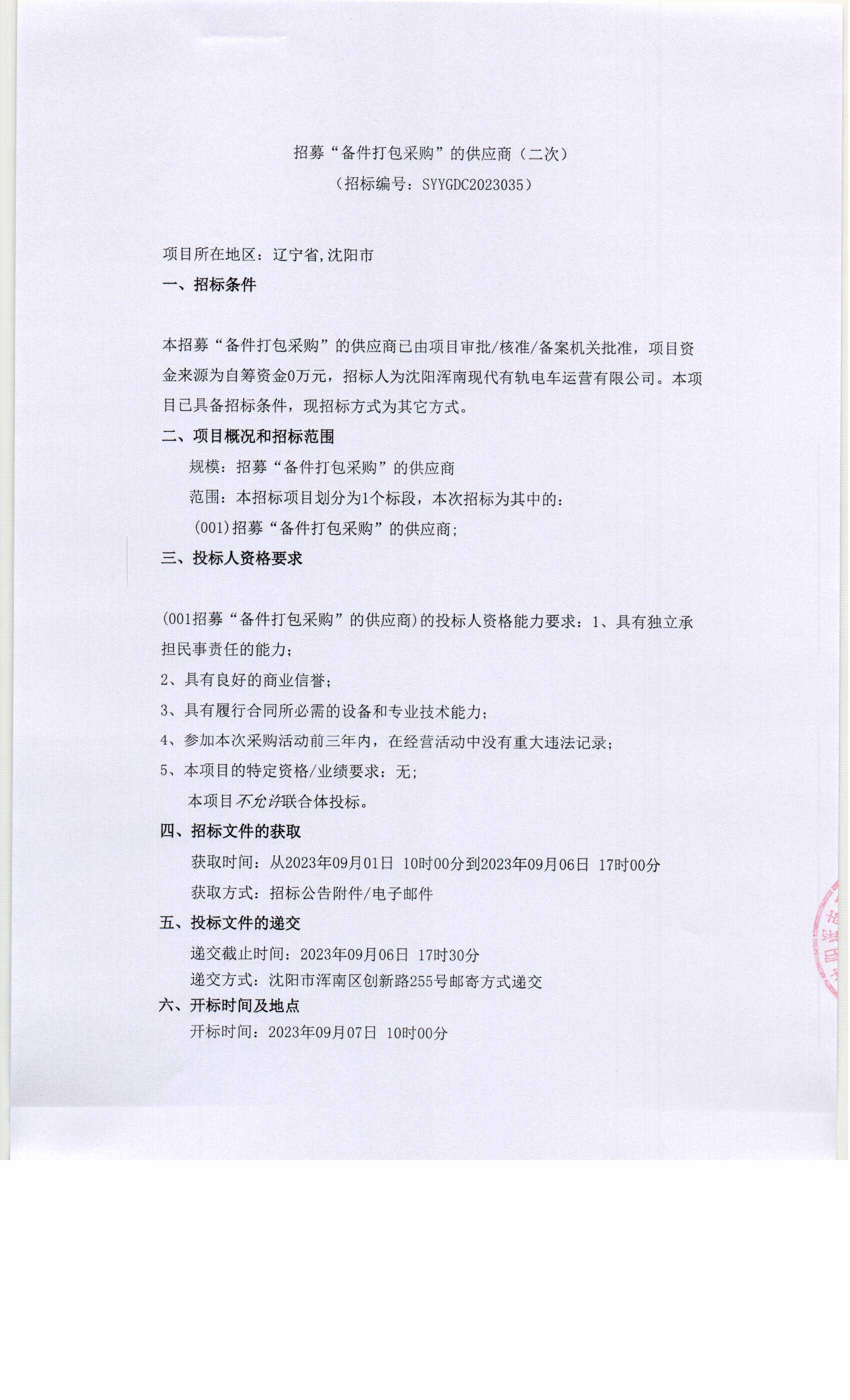 招采公告-招募“备件打包采购”的供应商