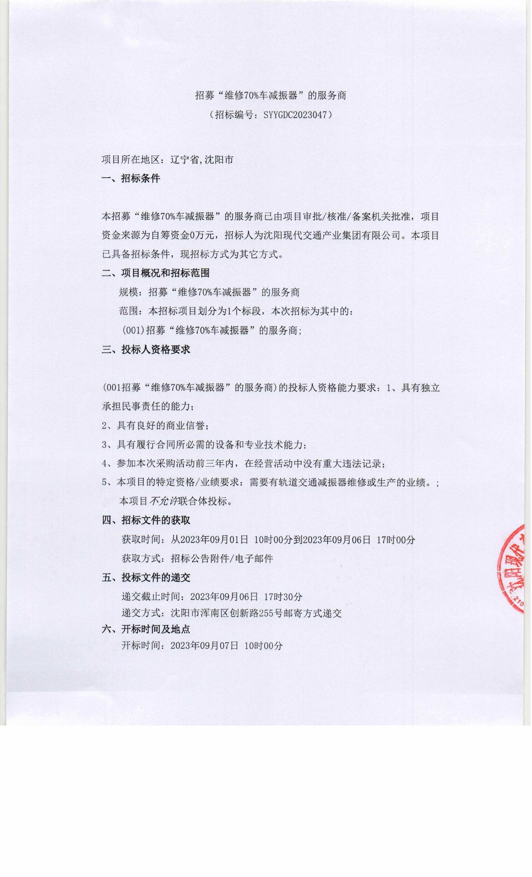 沈阳现代交通产业集团 | 2023-09-01