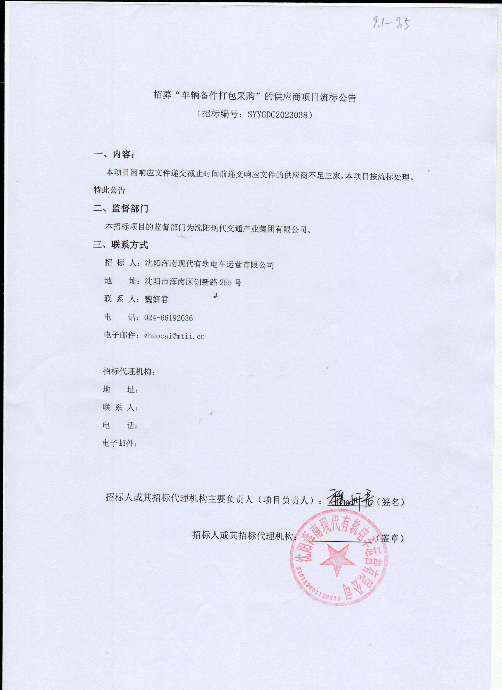 招募“车辆备件打包采购”的供应商项目流标公告