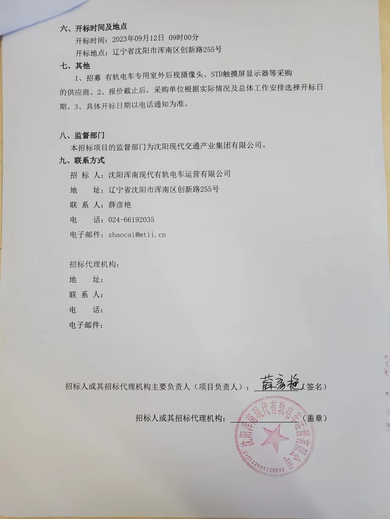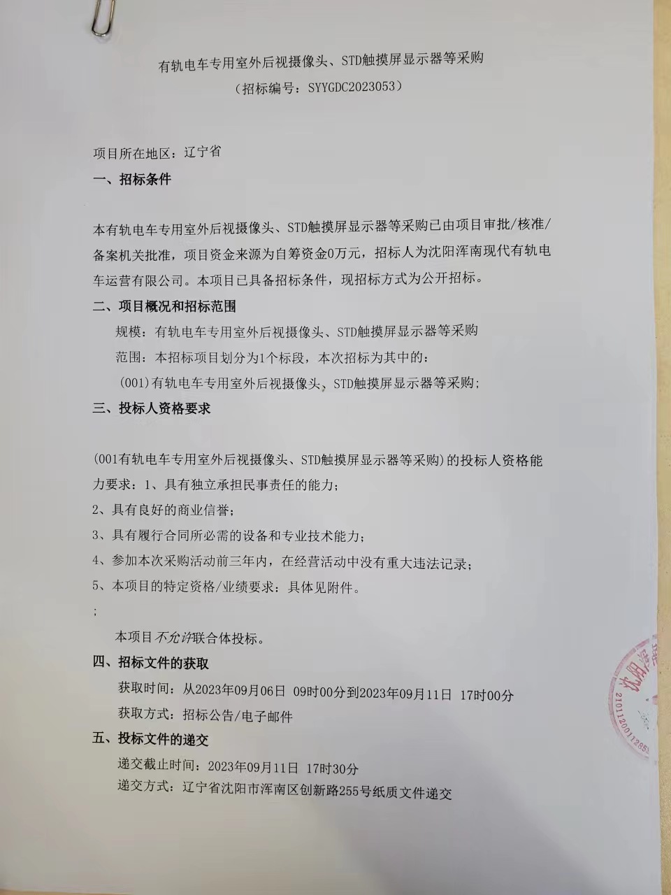 招采公告-招募“有轨电车专用室外后视摄像头、STD触摸屏显示器等采购”供应商