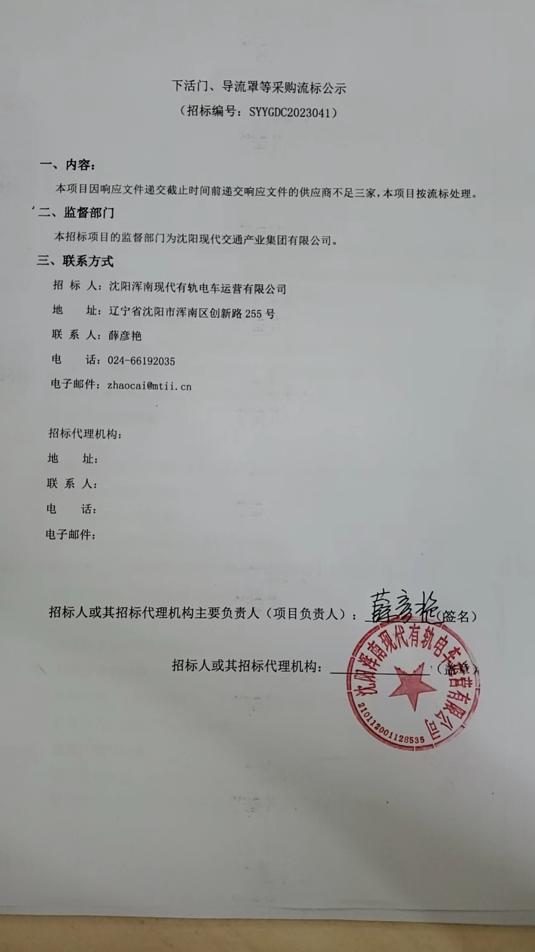 下活门、导流罩等采购流标公告