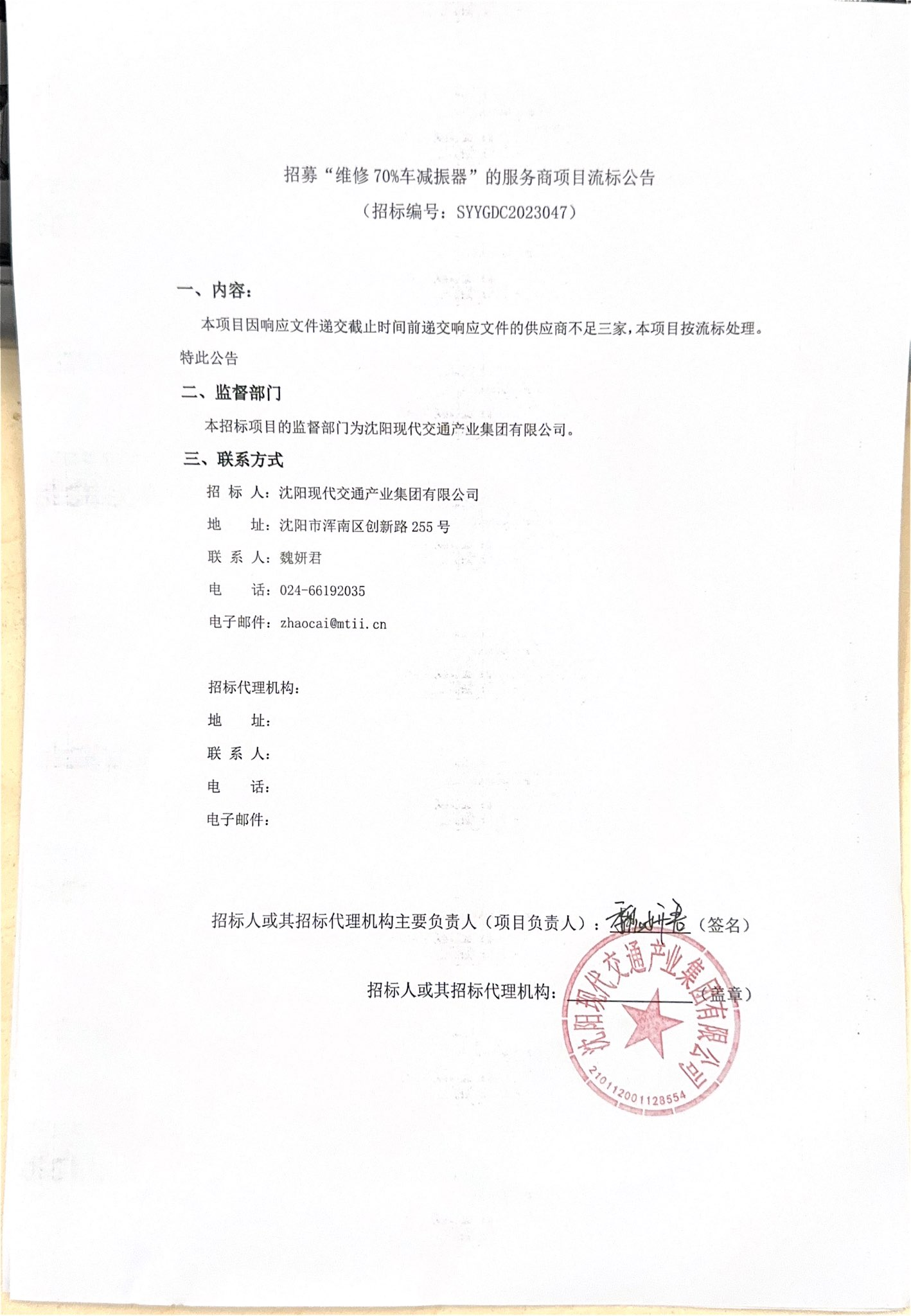 招募“维修70%车减振器”的服务商项目流标公告