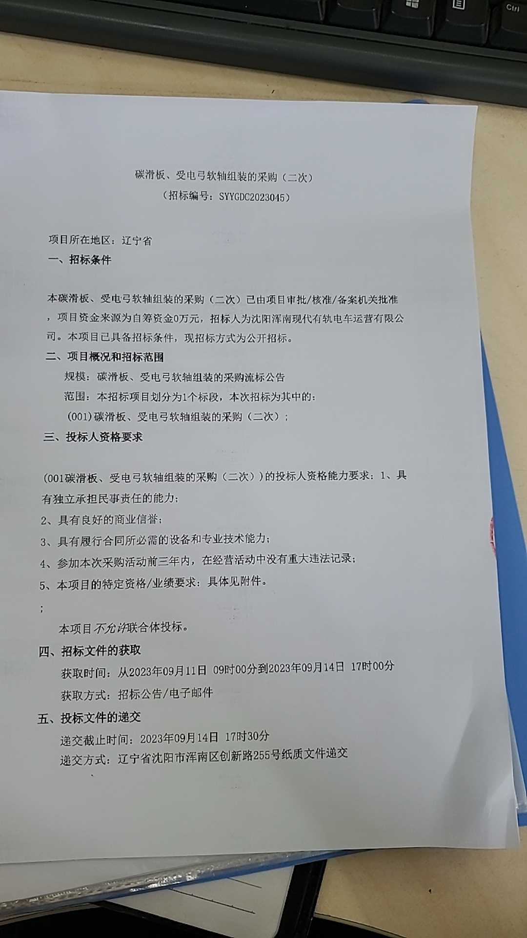 招采公告-招募“碳滑板、受电弓软轴组装的采购(二次)”供应商