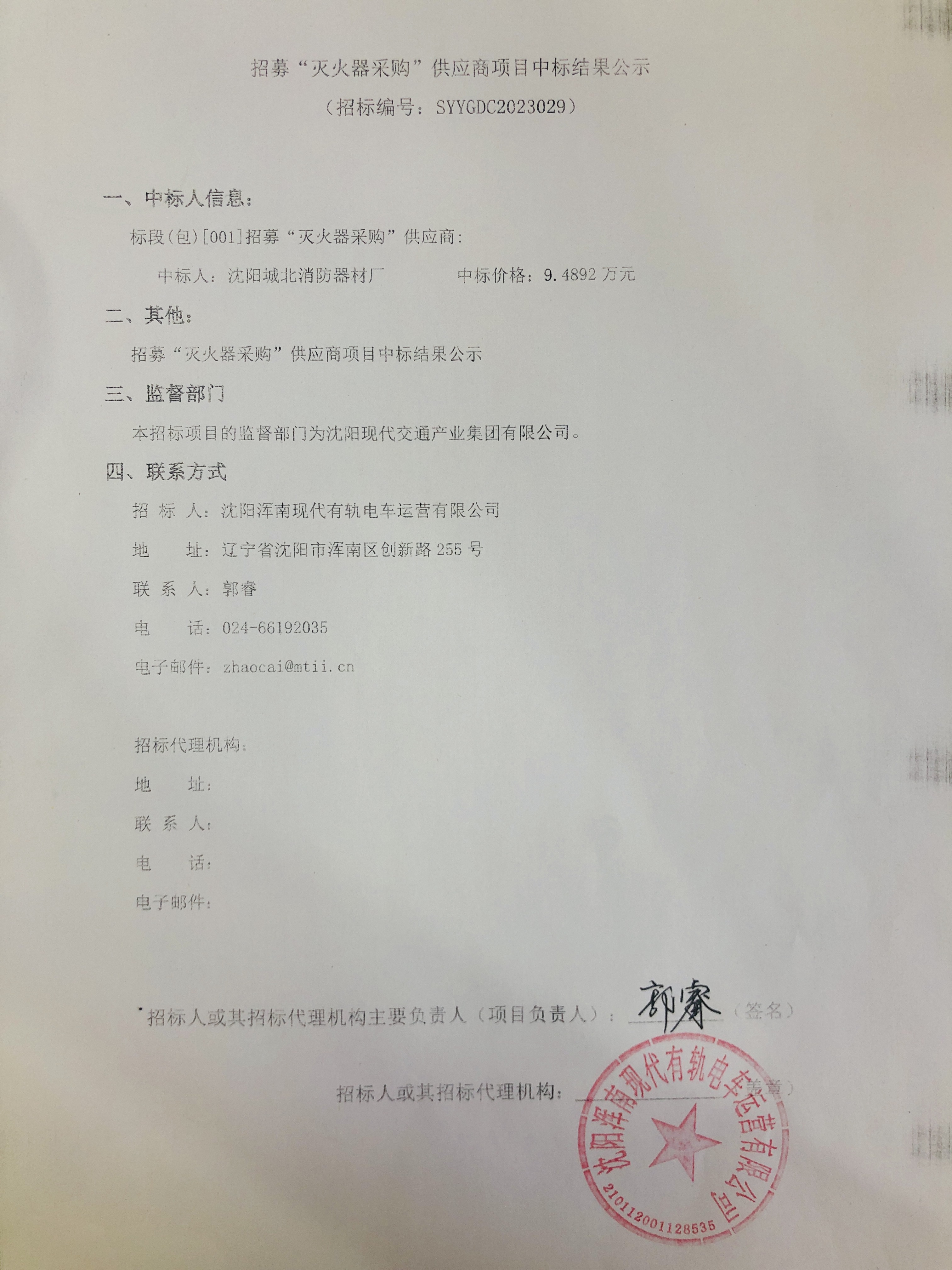 招募“灭火器采购”供应商项目中标结果公示