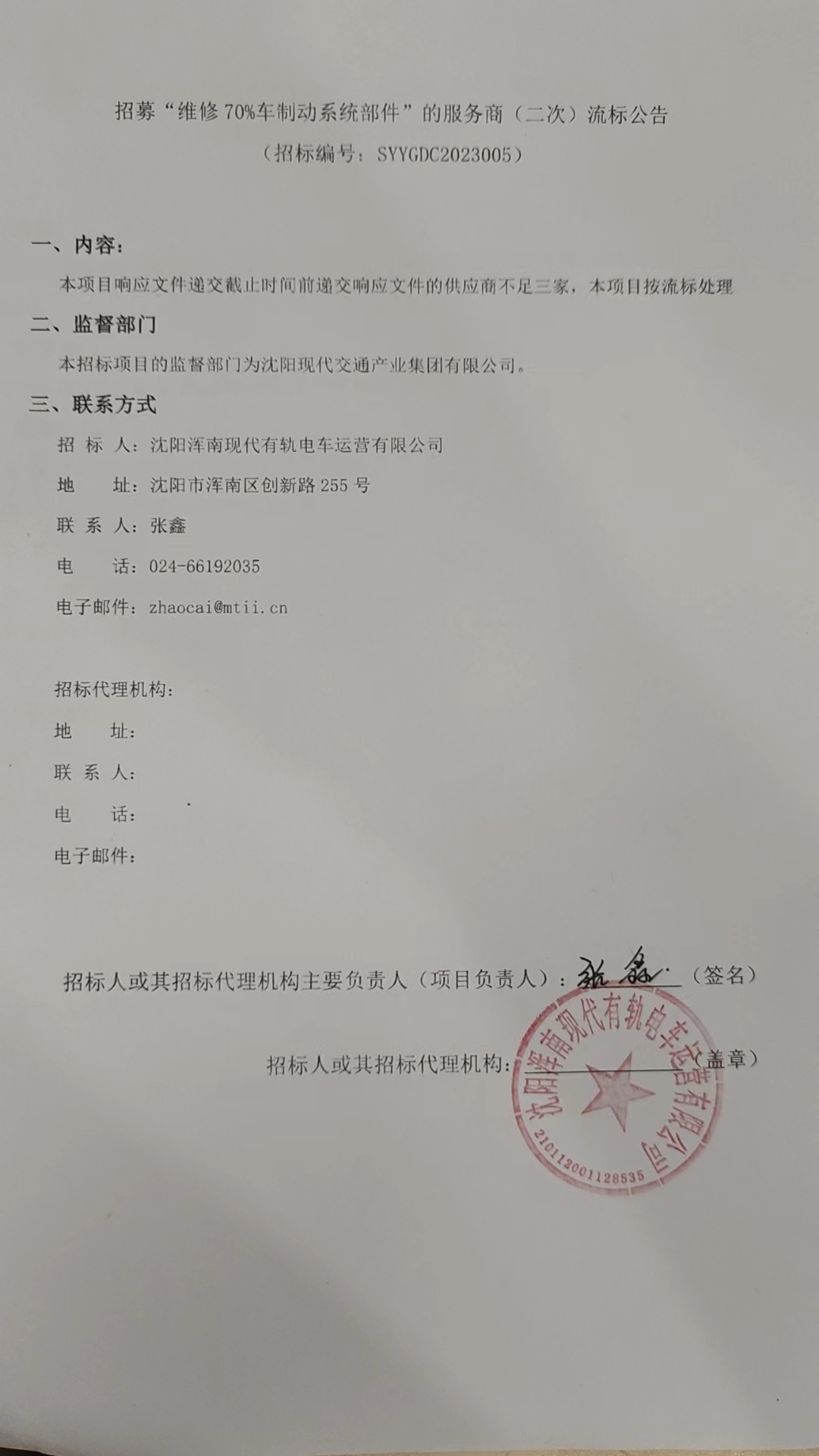 招募“维修70%车制动系统部件”的服务商(二次)流标公告