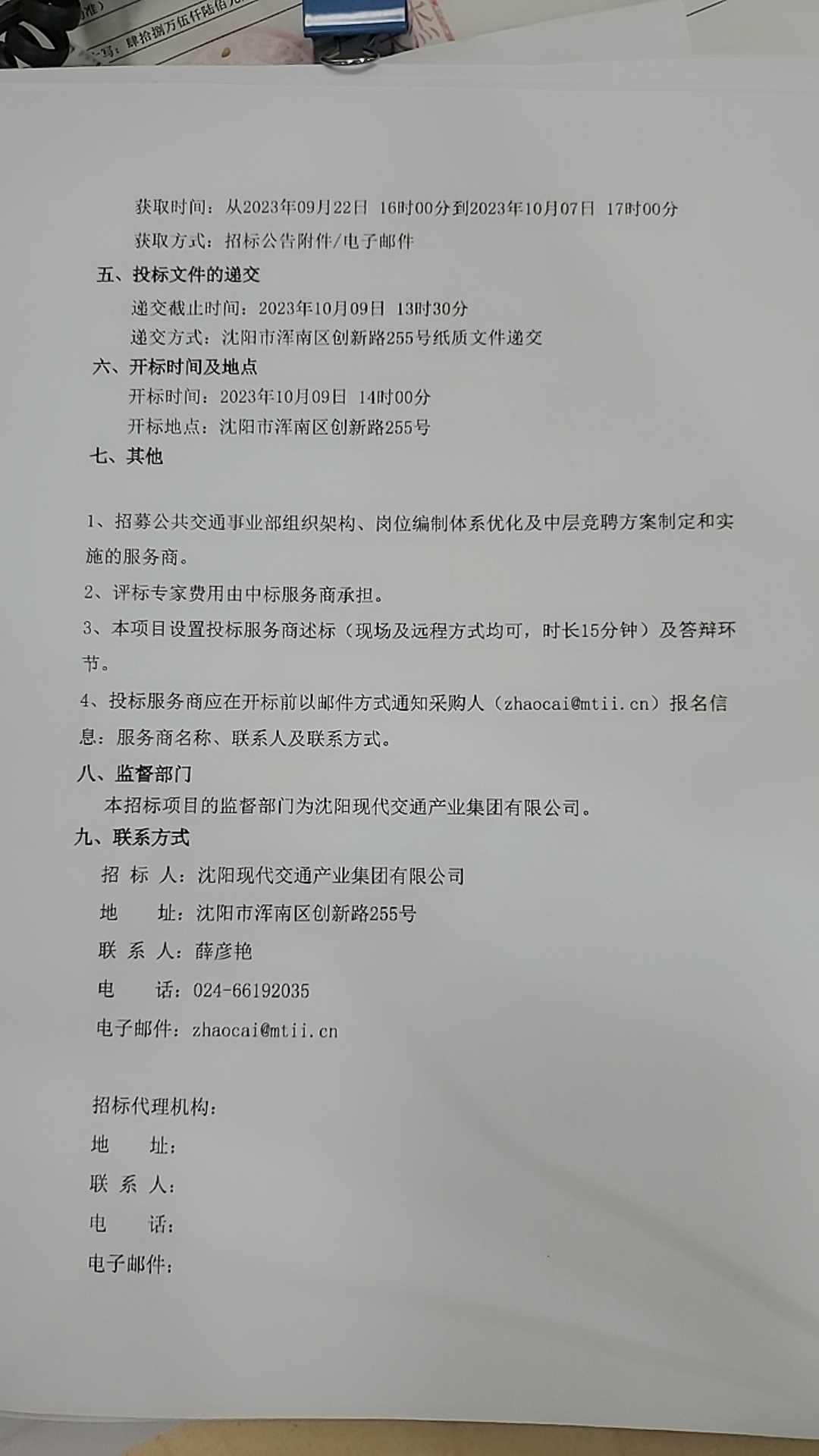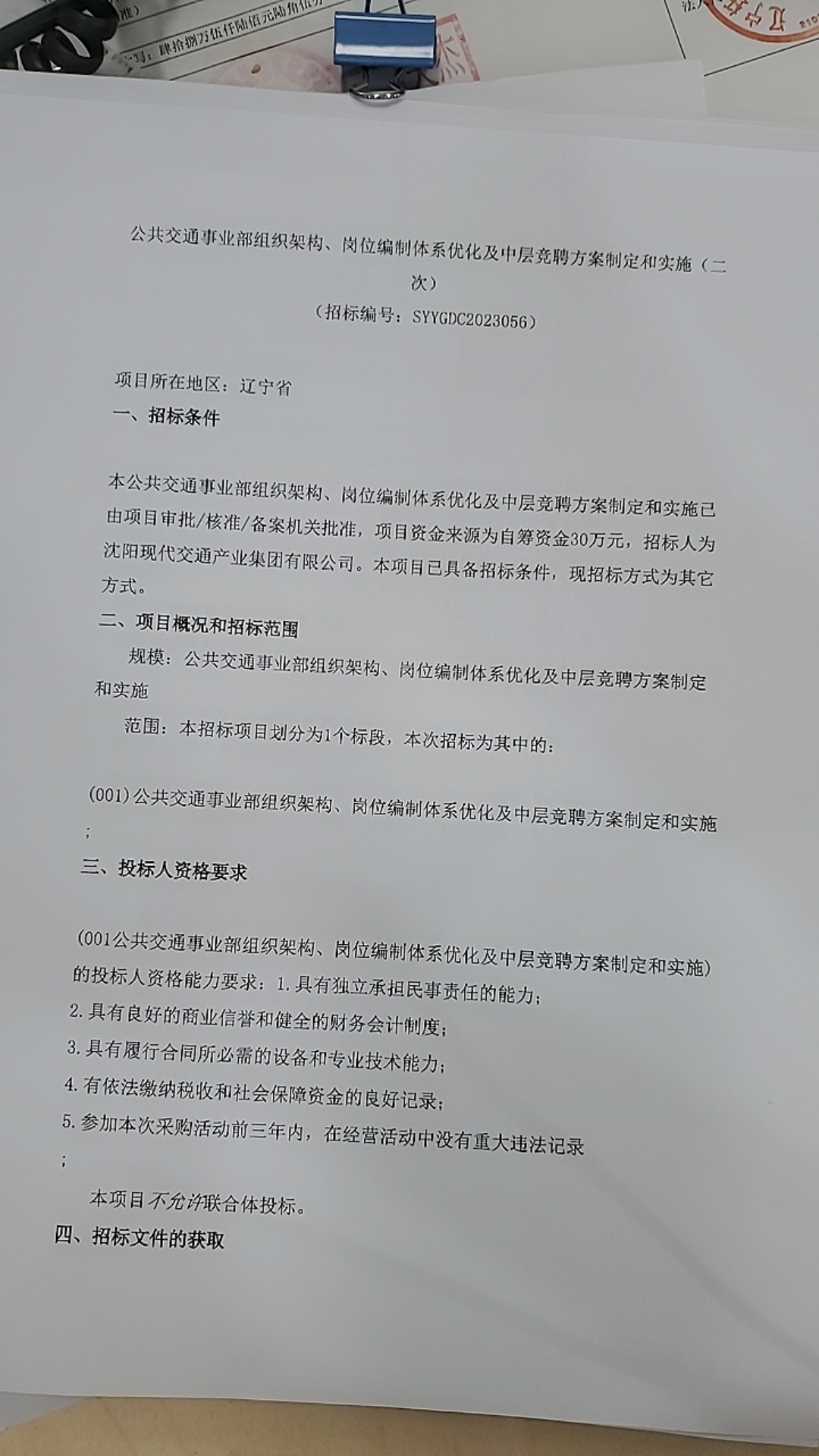 招采公告-招募“公共交通事业部组织架构、岗位编制体系优化及中层竞聘方案制定和实施(二次)”的服务商