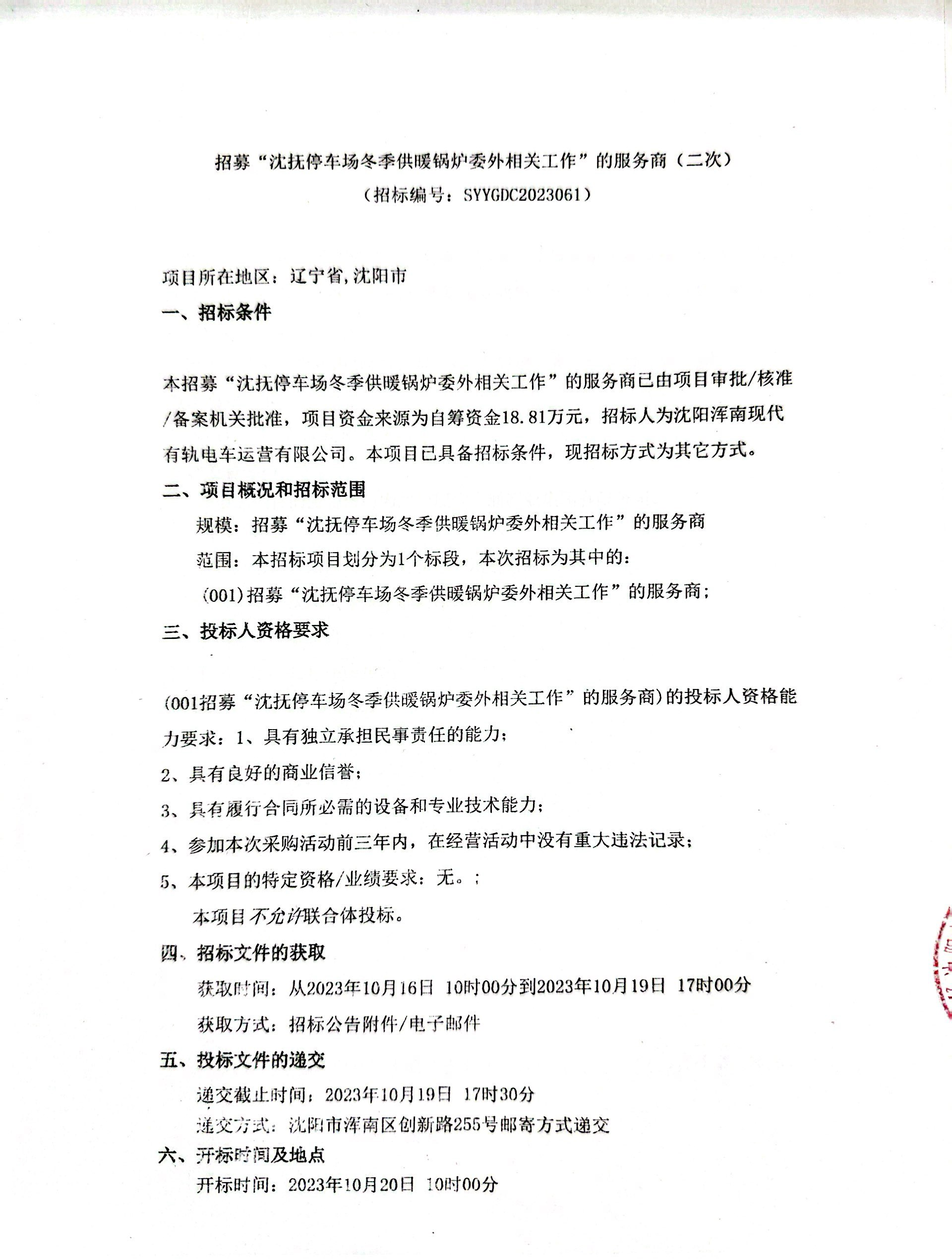 招采公告-招募“沈抚停车场冬季供暖锅炉委外相关工作”的服务商(二次)