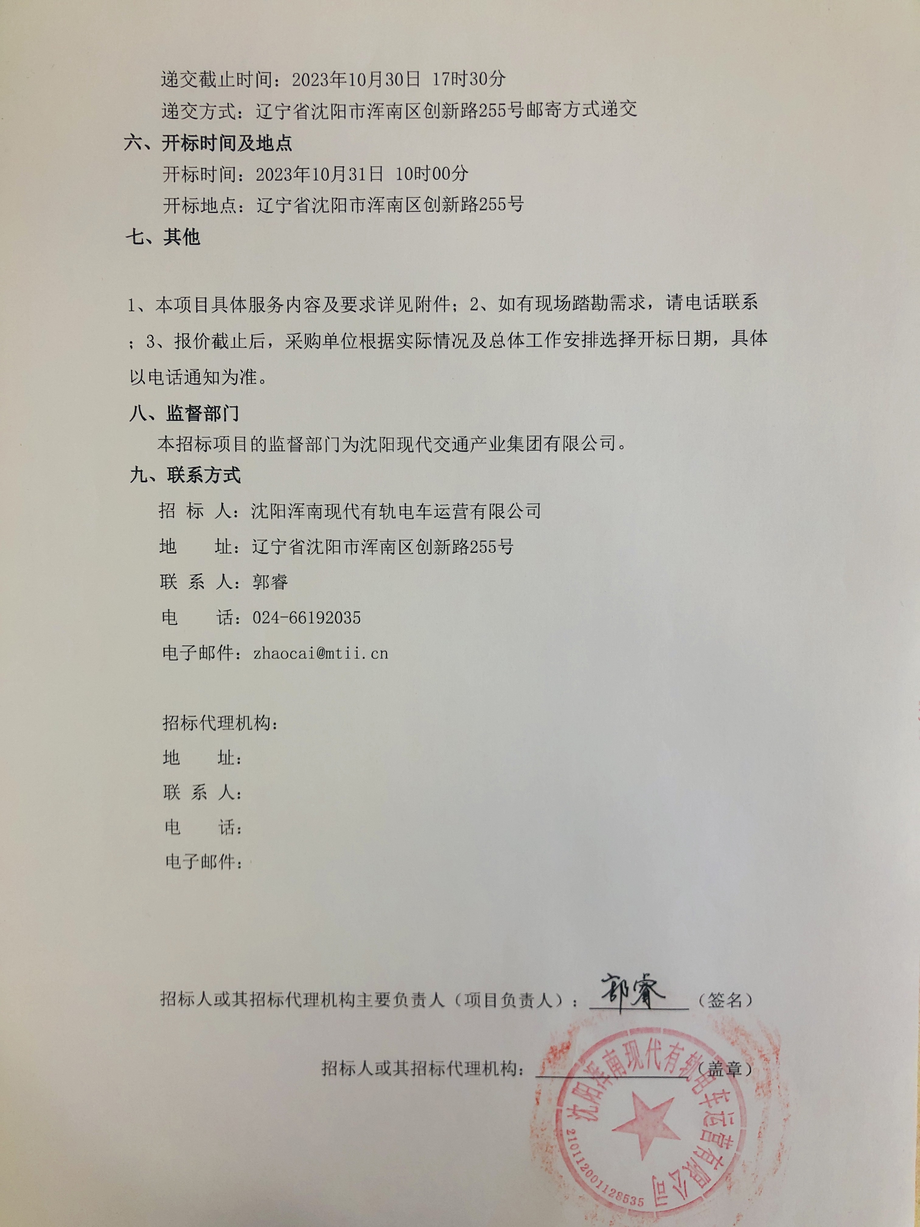 招采公告-招募“沈阳浑南有轨电车正线站台夹胶玻璃底框紧急维修”服务商
