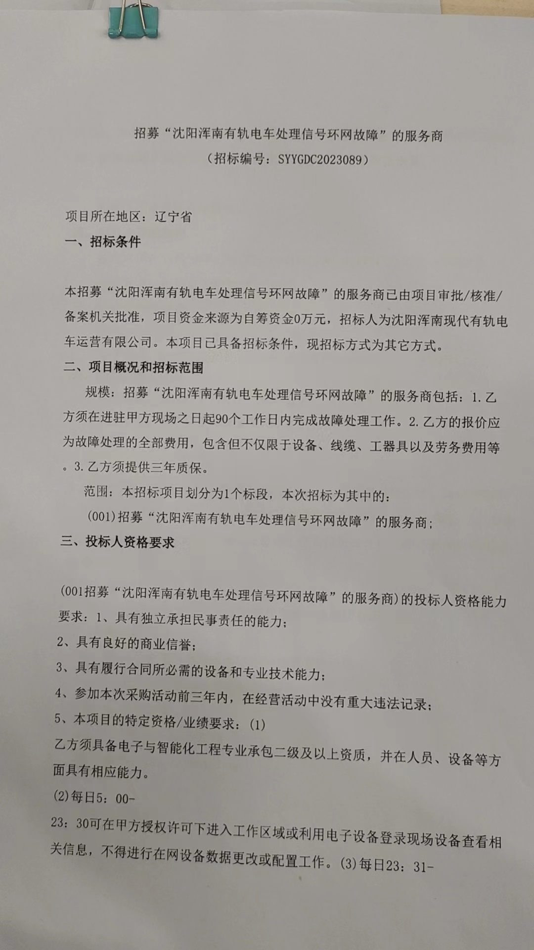 附件-招募“沈阳浑南有轨电车处理信号环网故障”的服务商