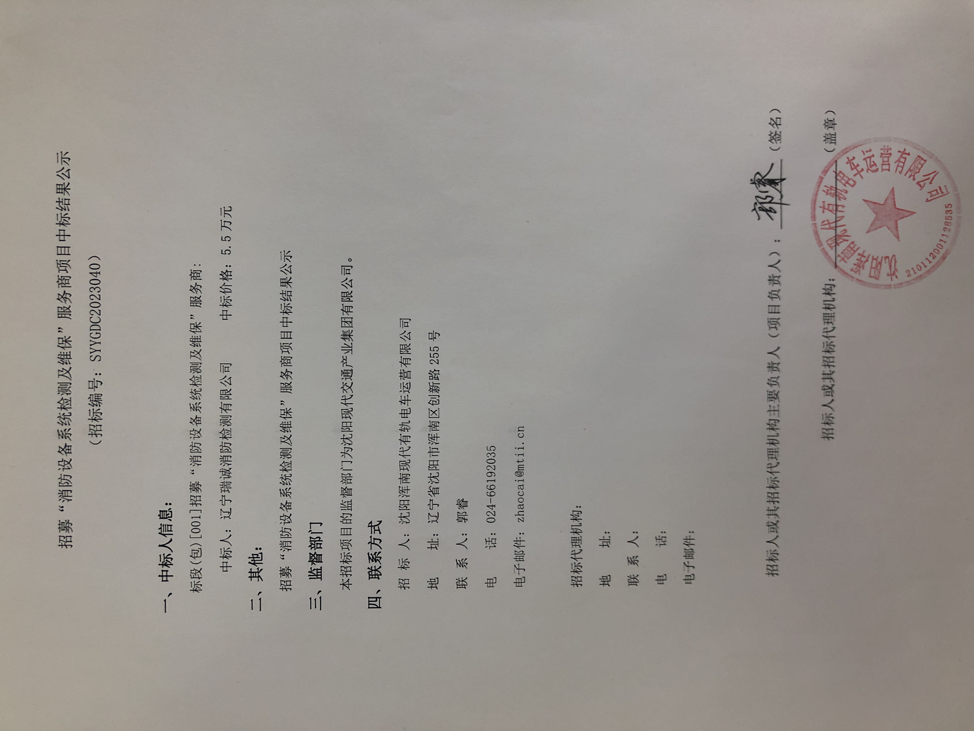招募“消防设备系统检测及维保”服务商项目中标结果公示