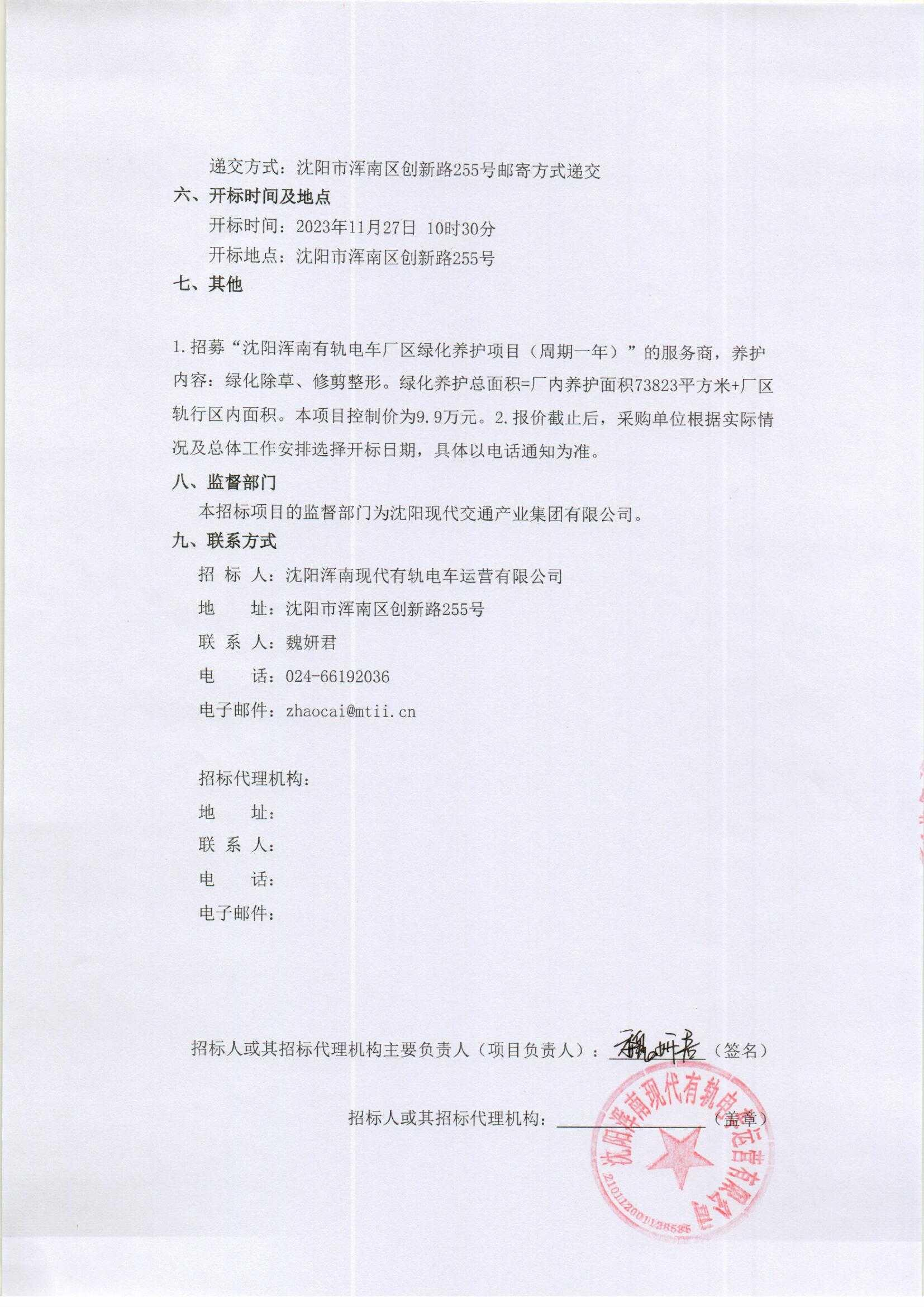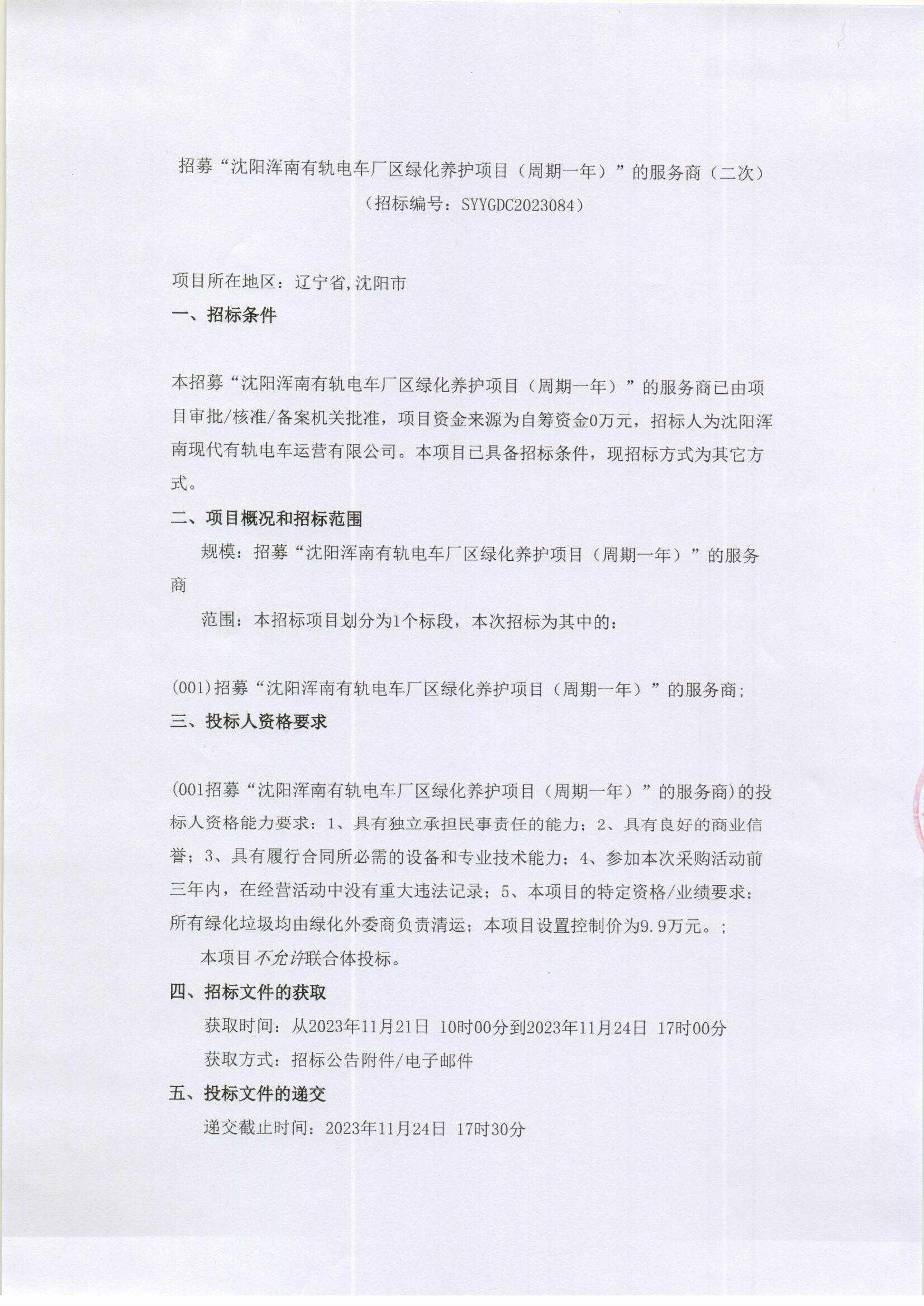 招募“沈阳浑南有轨电车厂区绿化养护项目”的服务商(二次)