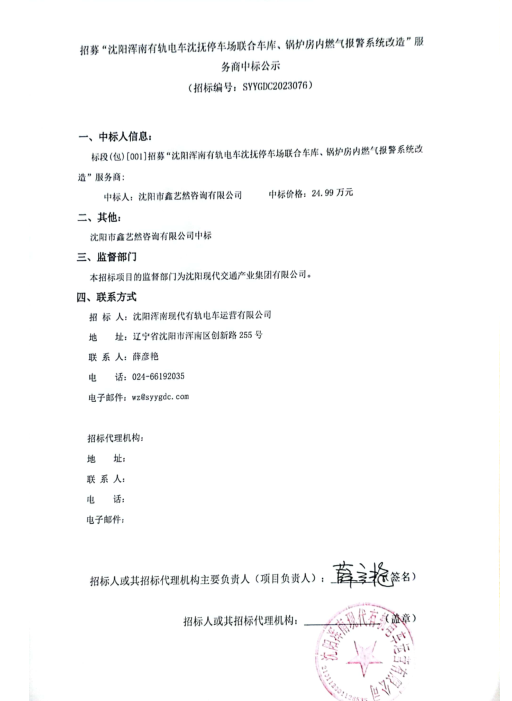 招募“沈抚停车场联合车库、锅炉房内燃气报警系统改造”服务商中标公示