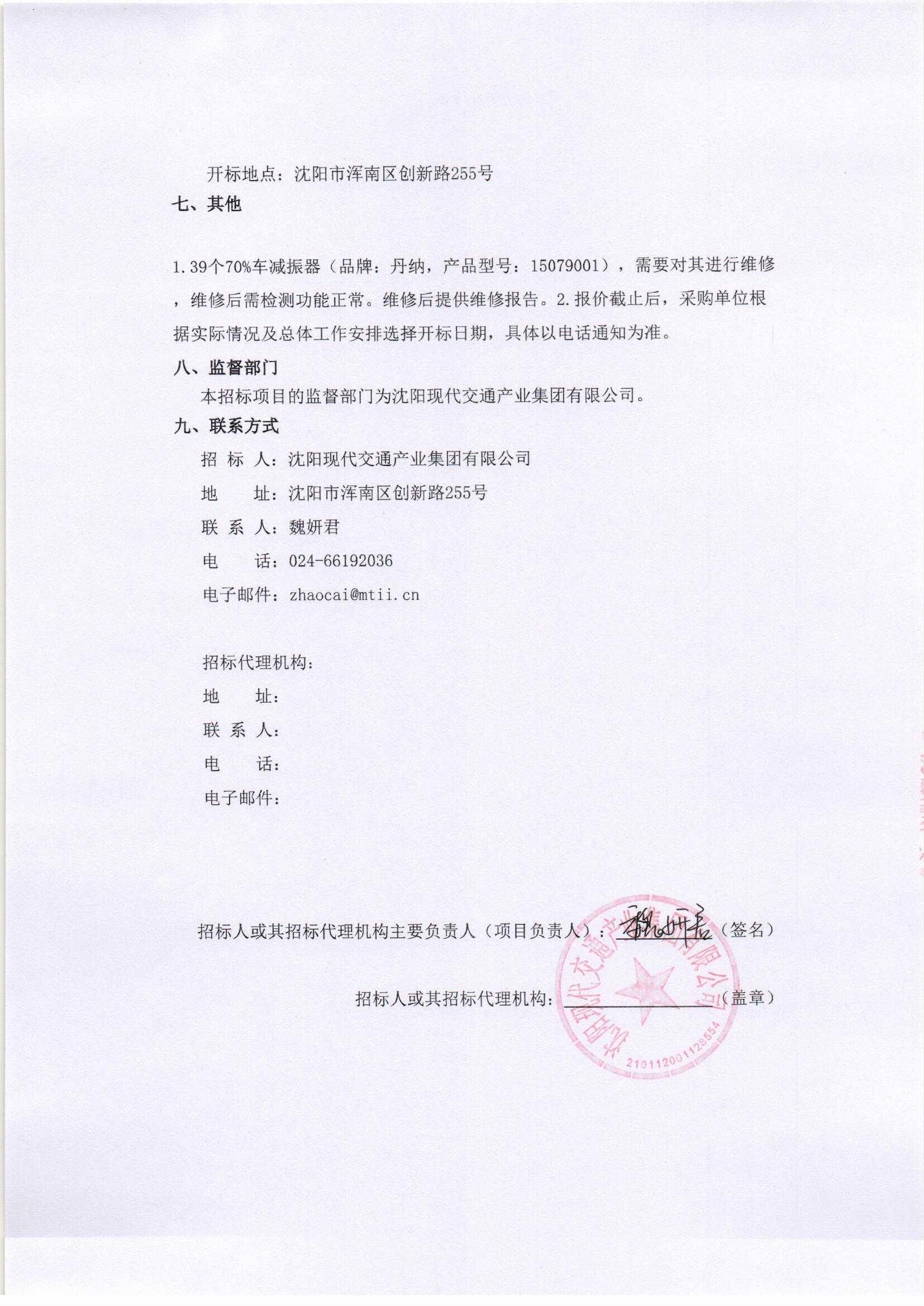 招募“沈阳浑南有轨电车维修39个70%车减振器”的服务商-递交文件模版及相关说明