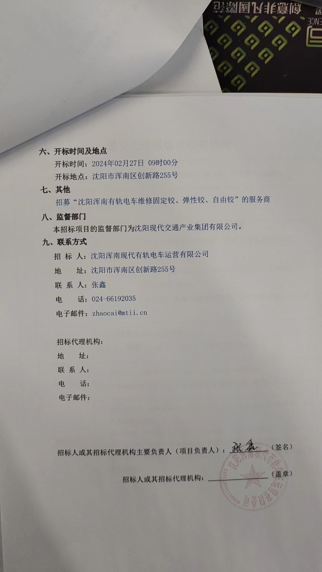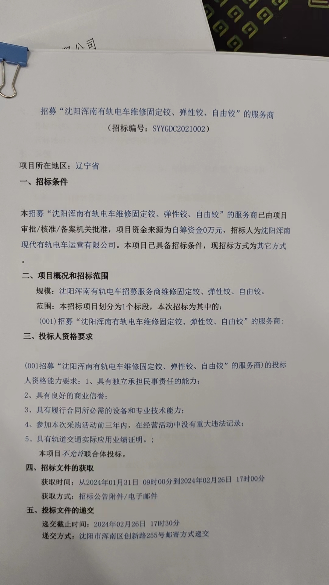 附件-招募“沈阳浑南有轨电车维修固定铰、弹性铰、自由铰”的服务商
