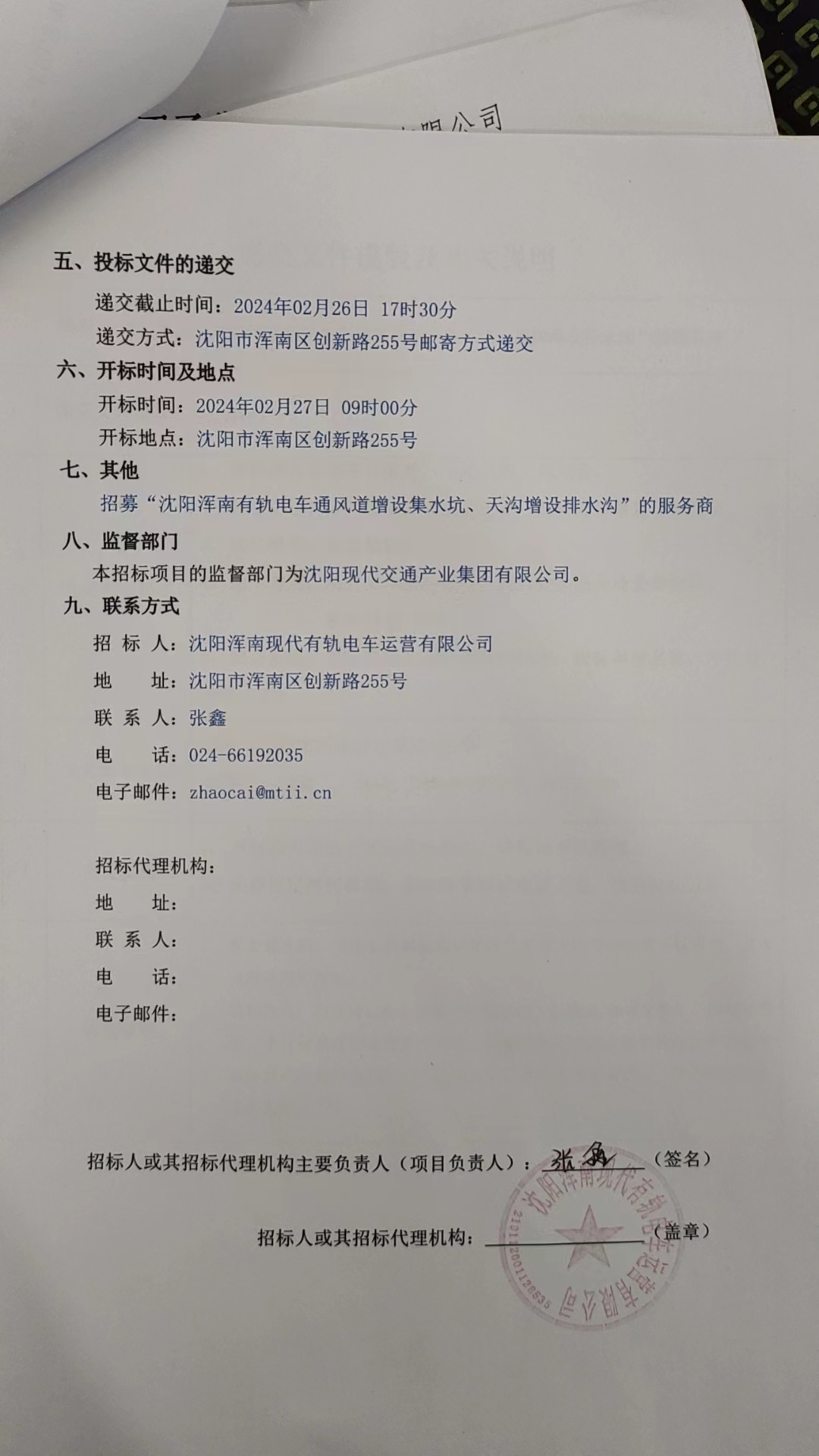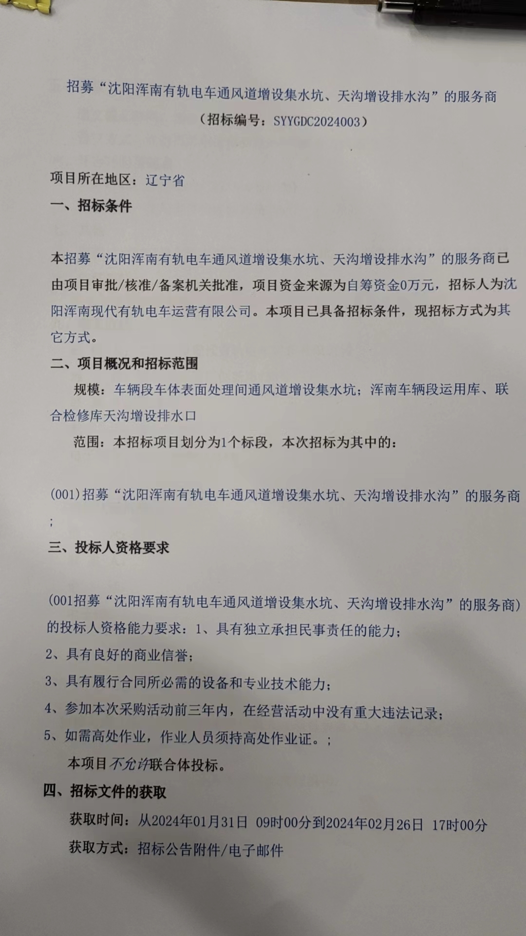招采公告-招募“沈阳浑南有轨电车通风道增设集水坑、天沟增设排水沟”的服务商