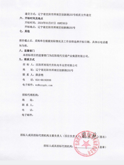 招采公告-招募“沈阳浑南有轨电车碳滑板、软连线等车辆专用备件采购”供应商