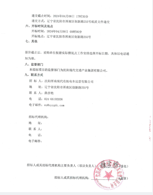 招采公告-招募“沈阳浑南有轨电车司控器、干燥筒等车辆专用备件采购”供应商