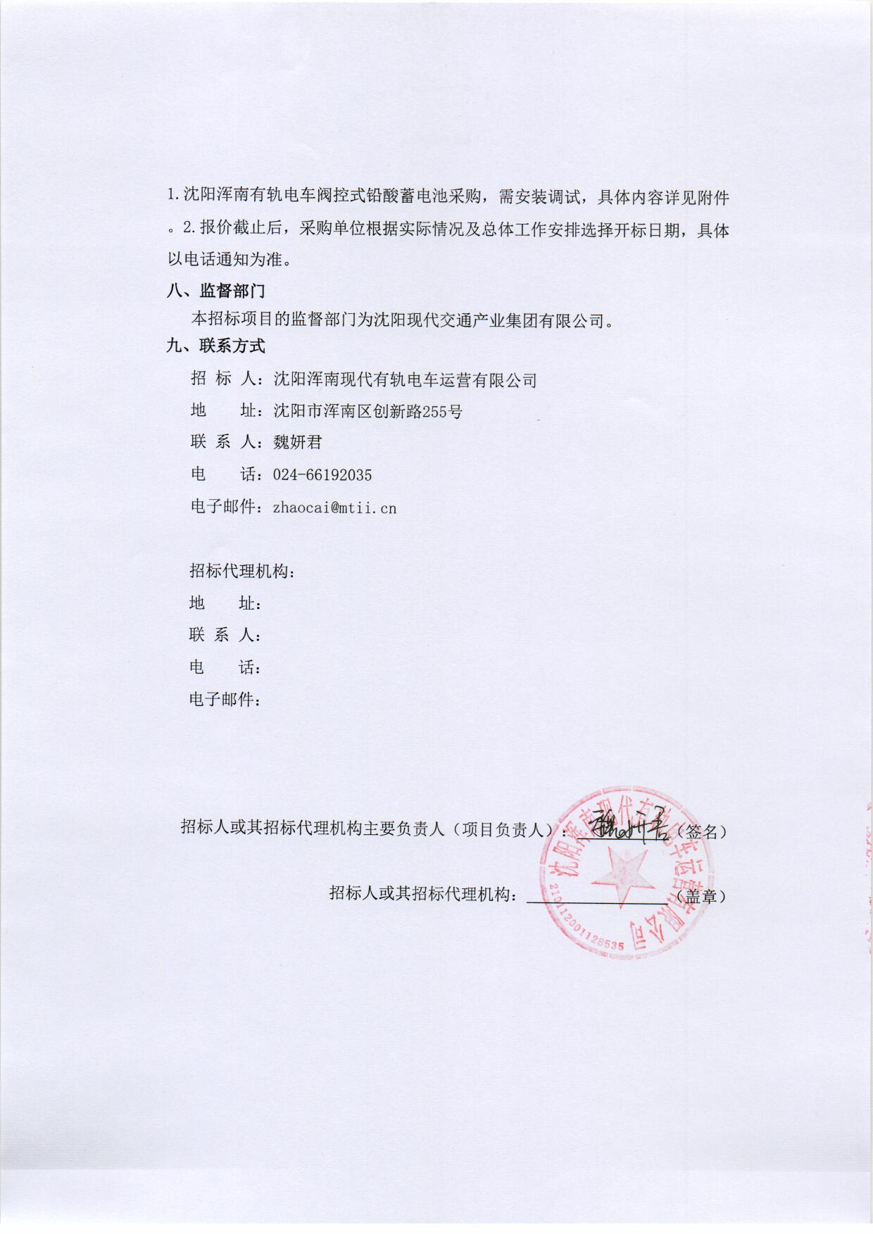 招募“沈阳浑南有轨电车阀控式铅酸蓄电池采购”的供应商