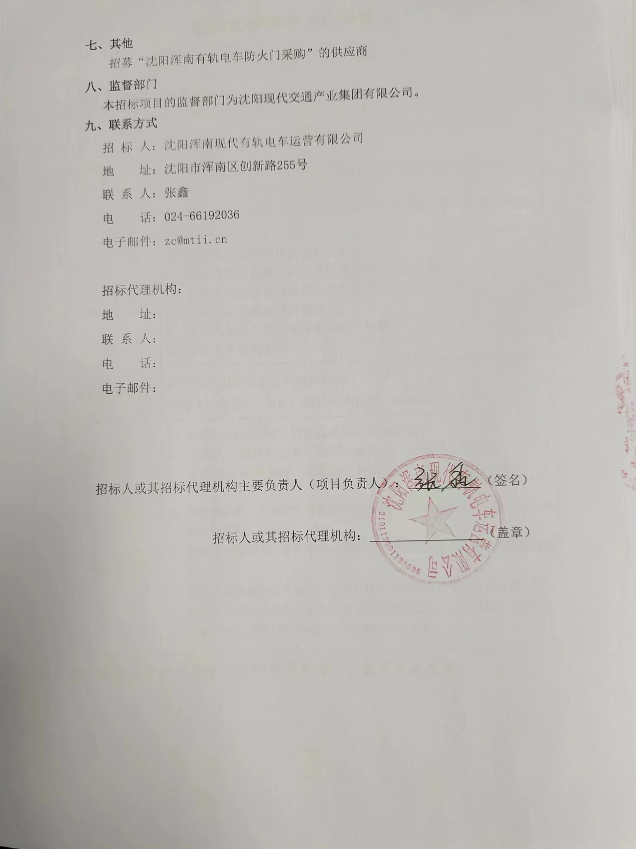 附件-招募“沈阳浑南有轨电车防火门采购”的供应商