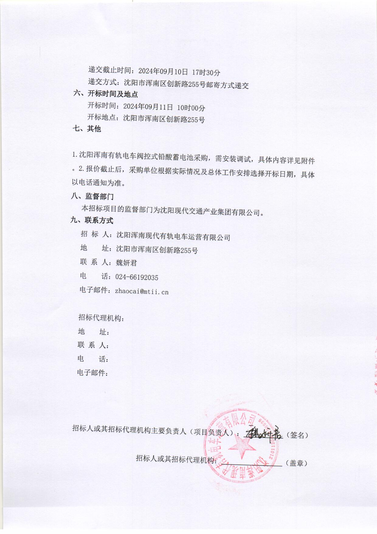 招采公告-招募“沈阳浑南有轨电车阀控式铅酸蓄电池(含连接线缆)采购”的供应商