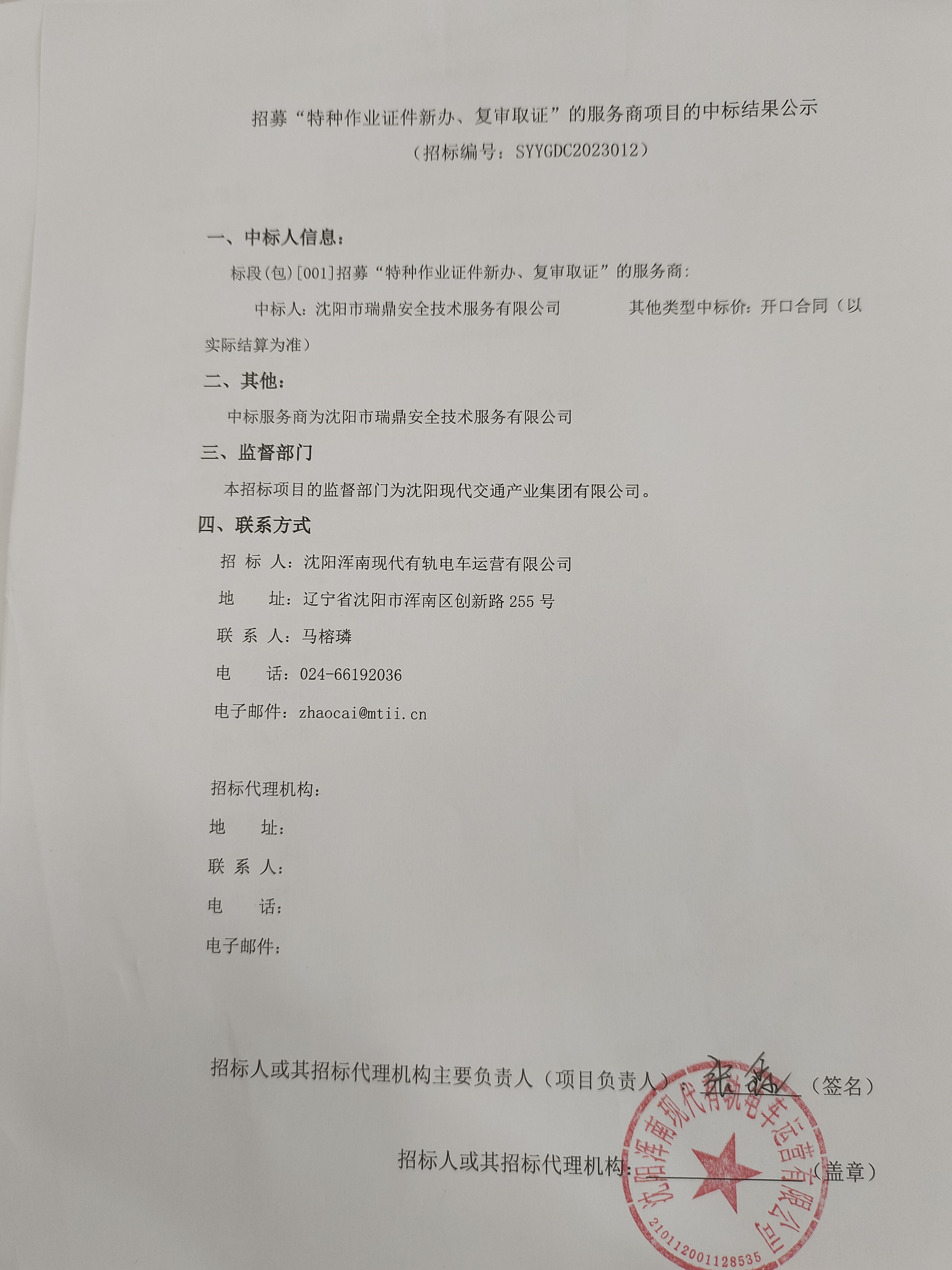 招募“特种作业证件新办、复审取证”的服务商项目的中标结果公示